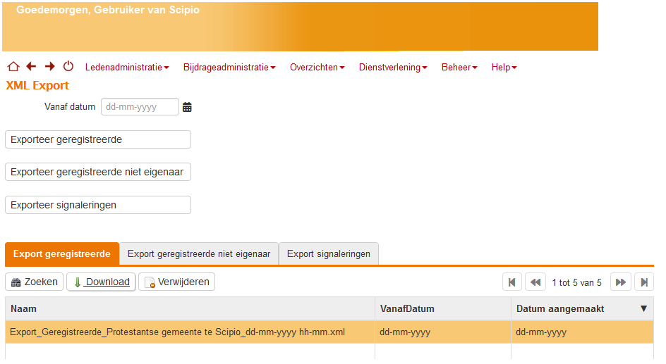Op de pagina die wordt geopend kunt u de verschillende mutatiebestanden exporteren. De volgende bestanden dienen alle drie aangemaakt en gedownload te worden: