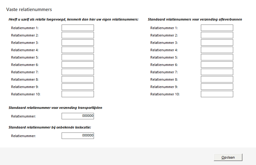 Beheer – Configuratie en beheer – Diversen-Instellingen – Vaste relatienummers